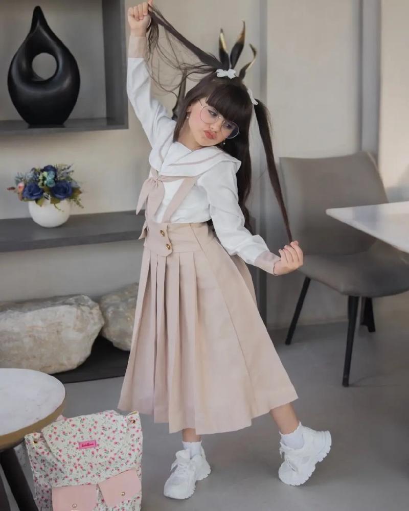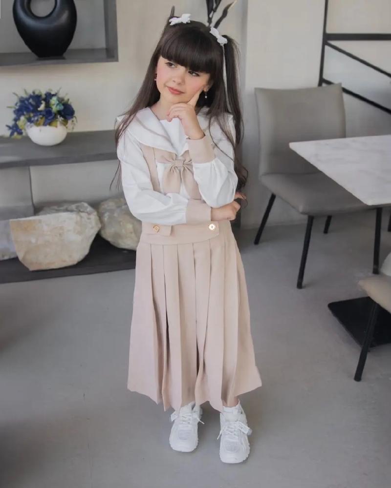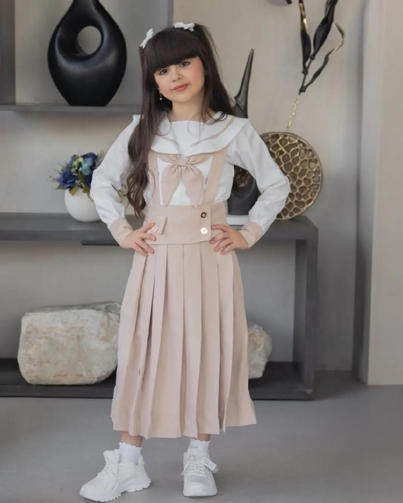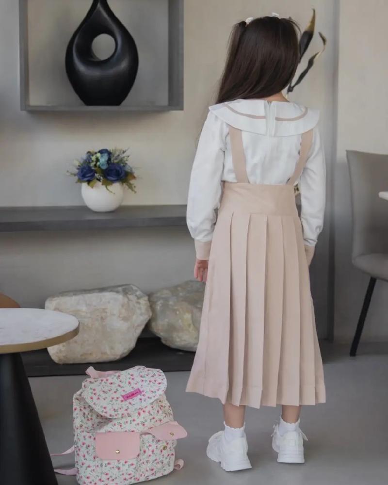 مريول مدرسي ابتدائي أنيق مع قميصخامات ذات جودة عاليةيندرج تحت خيار تجهيز حسب الطلبنوع المريول/ مريول ابتدائينوع القماش/ كريبالمقاسات بالعمر من 5سنة الى 15سنة
