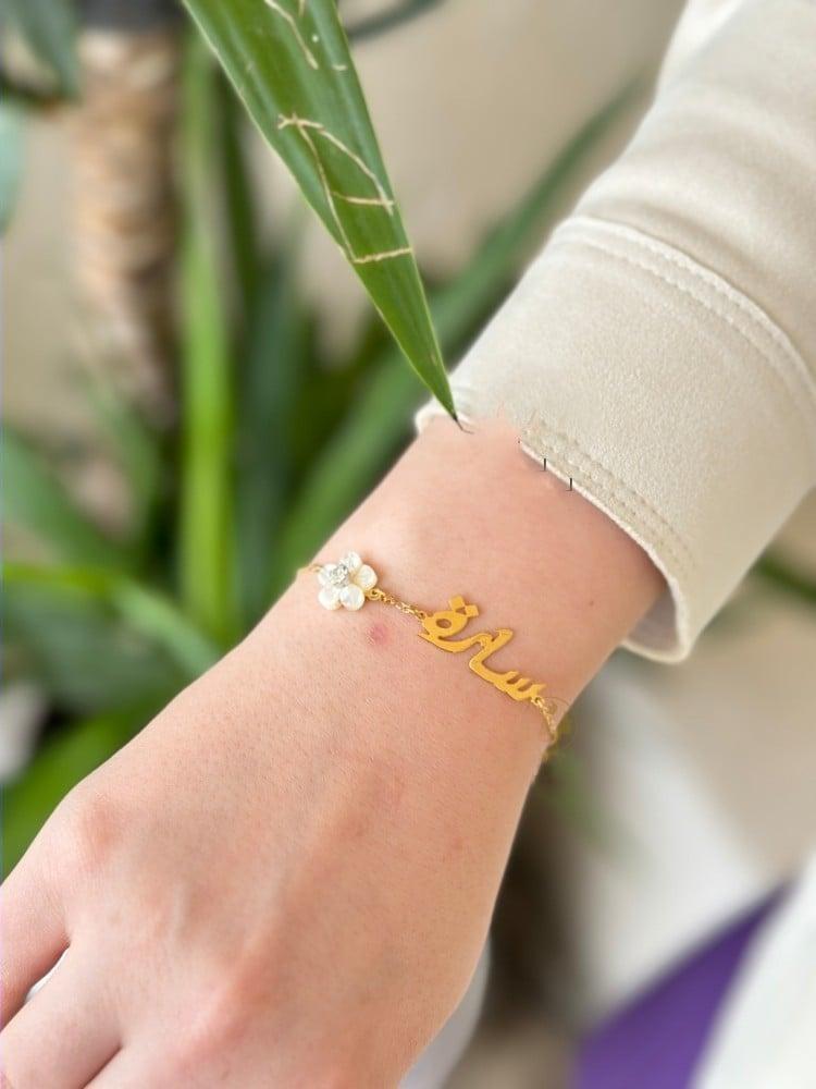 اسواره مطليه ذهب مع ورده صدف طبيعي