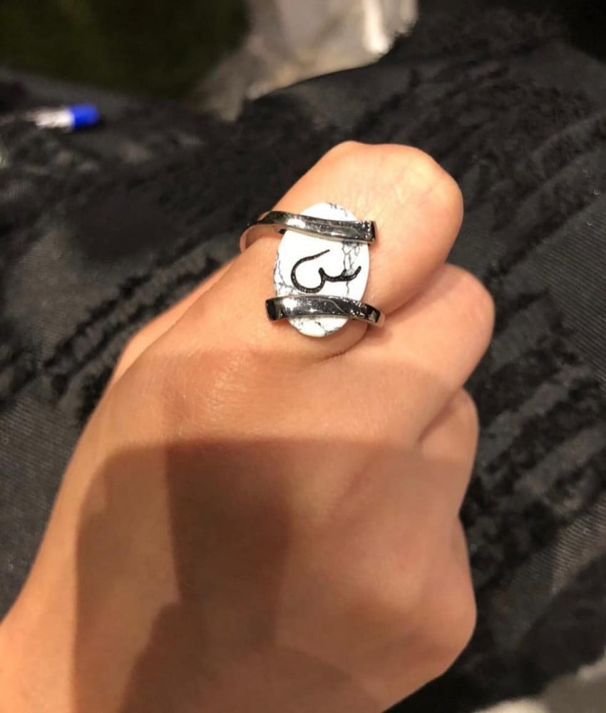 فريدہ انتي كالاماس💎 ، وعذبه كاليآقوت ،لاجلك صممنا خاتم ملكي ماربل 💍، ليحاكي إطالتك الملكيه 👑.خاتم ملكي فضه خالص عيار 925بإمكانك تغير الكتابة حسب اختياركمتوفر جميع المقاسات حسب مقاسكيأتي داخل علبة هدايا انيقة وكيس عليه