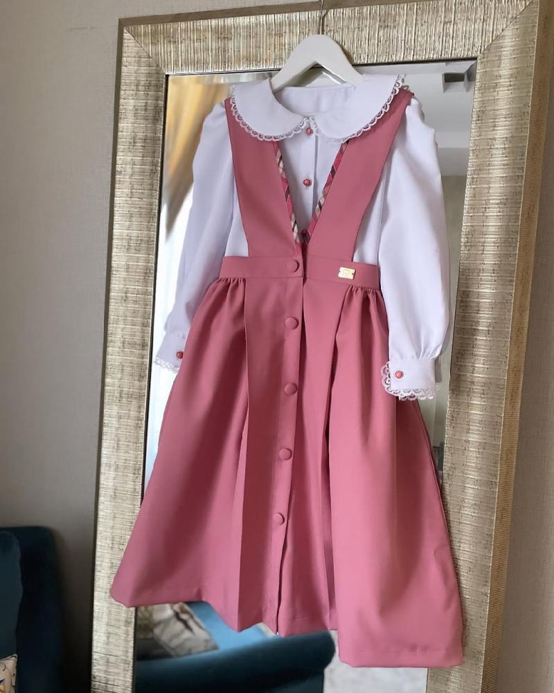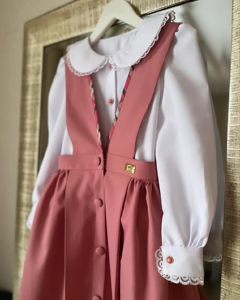 مريول مدرسي ابتدائي أنيق مع قميصخامات ذات جودة عاليةيندرج تحت خيار تجهيز حسب الطلبنوع المريول/ مريول ابتدائينوع القماش/ كريبالمقاسات بالعمر من 5سنة الى 15سنة